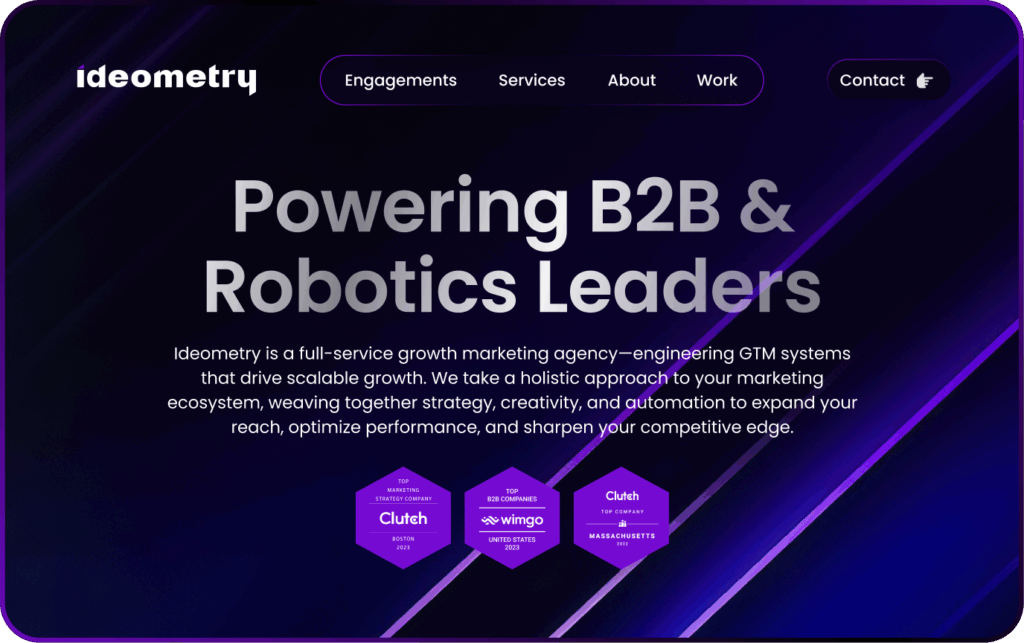 Ideometry helps innovative robotics companies capture more market share with targeted, measurable marketing strategies — so you can grow faster without wasting budget.
